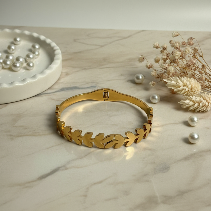 Bring the beauty of nature to your style with Paristor’s Gold Leaf Motif Open Bangle! 🍂